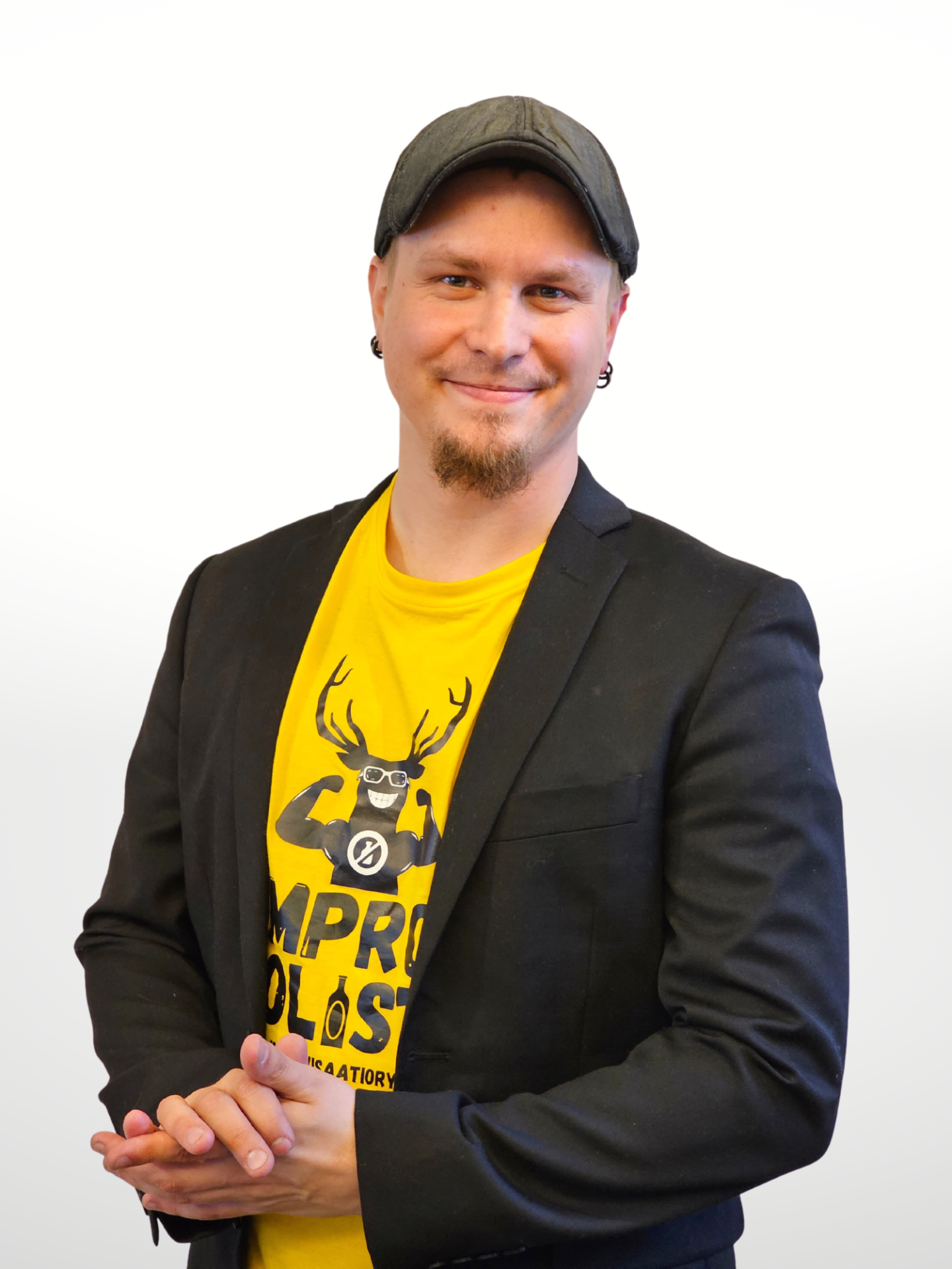 Improvisaatioteatteri on ollut osa elämääni lähes 15 vuotta. Se on laji, joka opettaa kuuntelemaan, olemaan läsnä ja reagoimaan viisaasti – taitoja, jotka ovat myös Tempputalon koulutusten ytimessä. Näyttelen lisäksi klassisen teatterin parissa, teen stand up -komiikkaa ja minulta on julkaistu myös pari kirjaa, joten esiintyminen ja tarinankerronta ovat minulle luontevia työkaluja.